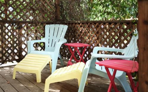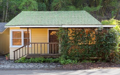 The front porch includes a semi-private enclosed sitting area. The backyard is landscaped with flower beds and an herb garden, picnic table, BBQ, outdoor shower and sitting area for enjoying the evening in this river neighborhood.